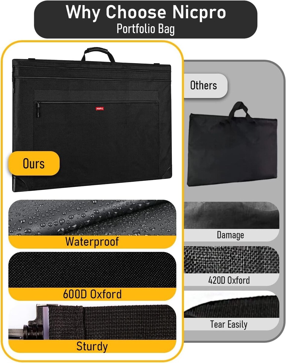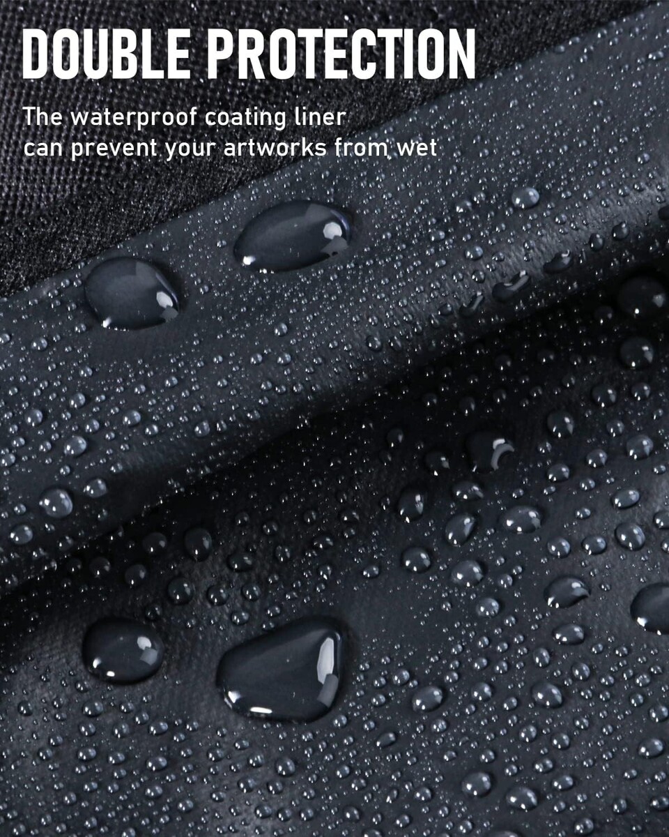 ?Double Water-Proof Design?: Art Portfolio Bag is not only made of water-proof fabric, but also have an interior water-repellent coating. The portfolio case can keep artwork from water damage, making it suitable for outdoor use or during transportation in unpredictable weather conditions. This ensures that paintings, sketches, or other artwork remain pristine and unaffected by moisture, even in rainy environments.