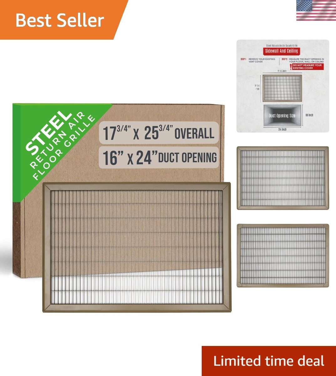 Heavy Duty Steel Return Air Floor Grille with Walkable Vent Cover - Brown Finish