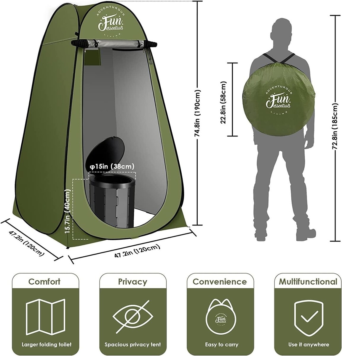 Privacy Guaranteed: The full-size privacy pop-up tent reaches 6 feet 2 inches, providing ample space for camping, outdoor showers, and changing clothes, ensuring privacy wherever you go.