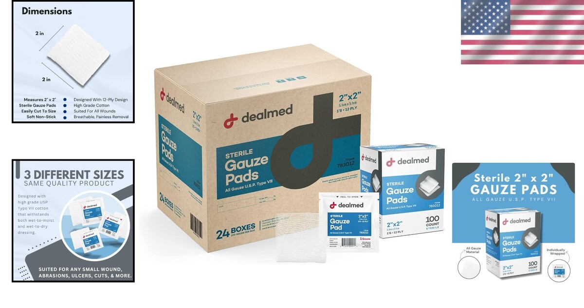 Disposable 2" x 2" Sterile Gauze Pads, 100 Count, Perfect for Medical Facilities