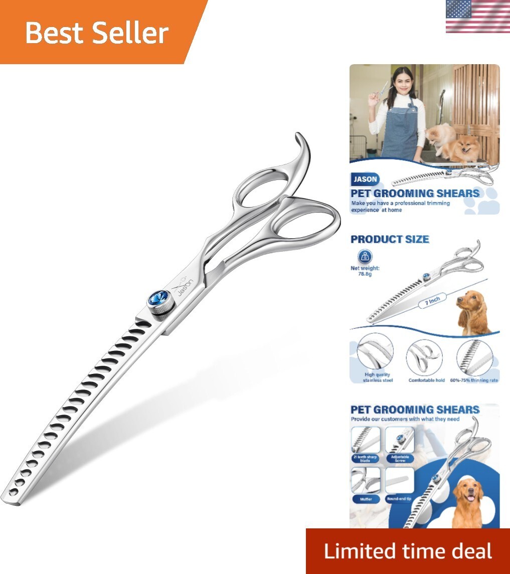 7" Curved Chunker Dog Scissors - Ergonomic Dog Grooming Scissors Silver Curved Dog Shears 440C Stainless Steel Grooming Shears Professional Pet Shears For Groomer 21-Teeth