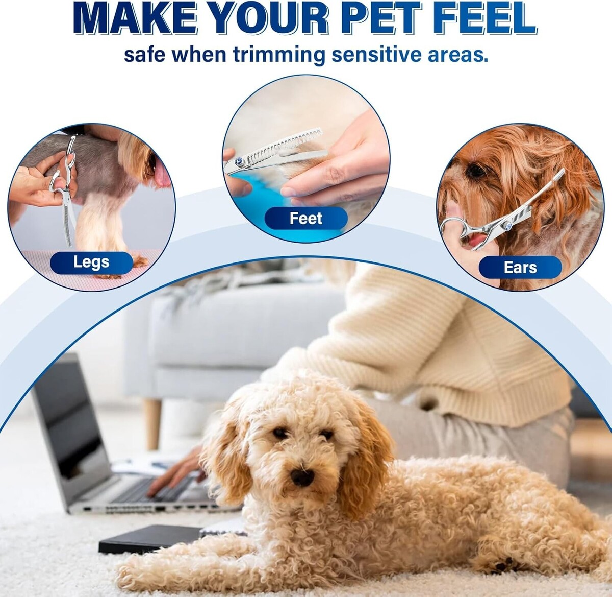 Sharp Convex Edge: The razor-sharp blades of this grooming scissors provide precise cutting and grooming for your pet, making it easy to achieve professional results at home. The slightly curved blade allows you to more easily cut your dog's hair into a round and cute shape.