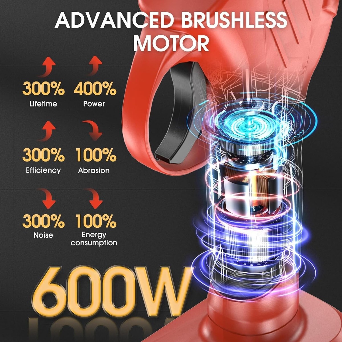 Upgraded 600W high power motor: Make Cutting More Efficient and Easier!! Compared to other low-power electric pruners on the market, it offers stronger cutting capacity, faster speed, and higher efficiency, making it more suitable for heavy-duty tasks.