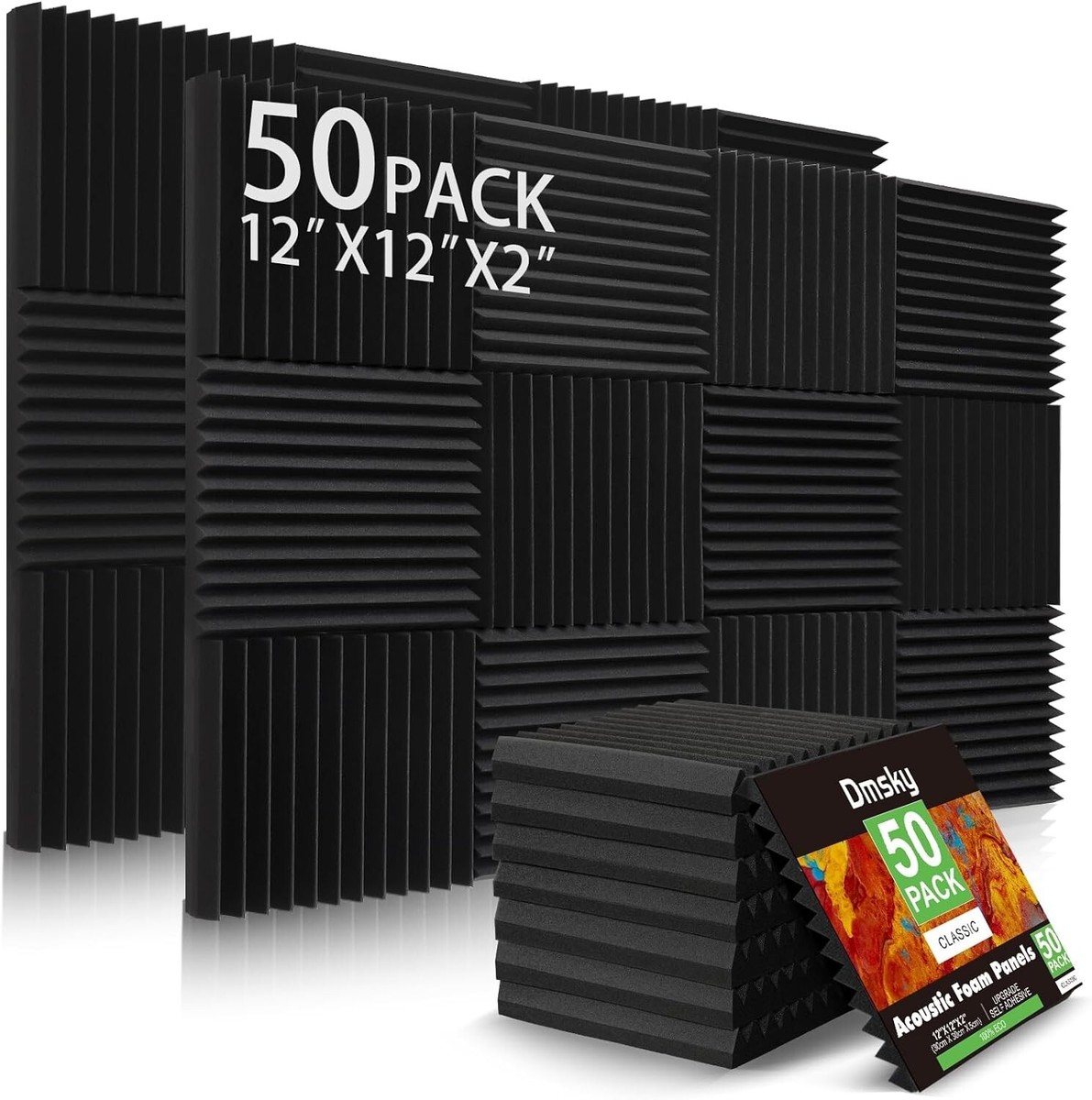 50 Pack Acoustic Foam Panels,2"X 12" X 12"Sound Proof Foam Panels-High Density Sound Absorbing Panels,Fire Resistant Soundproof Wedges Panels for Studio Recording Office Home