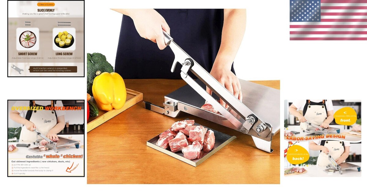 Upgraded Stainless Steel Manual Meat Slicer & Chopper with Adjustable Thickness