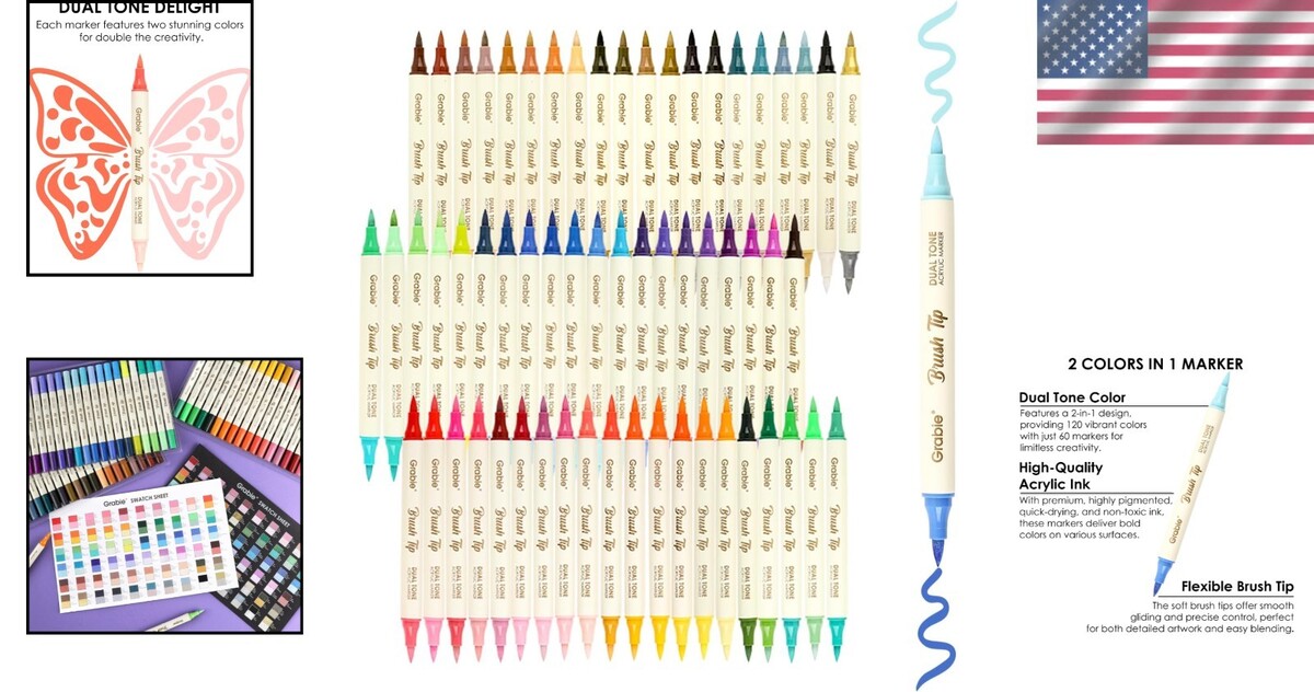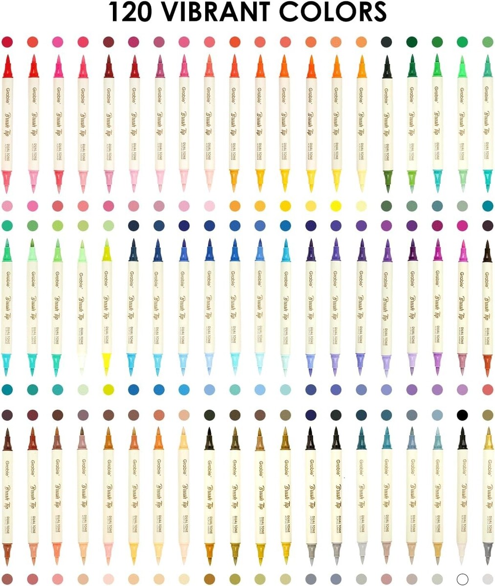 Vibrant 120 Color Dual Tone Acrylic Brush Markers