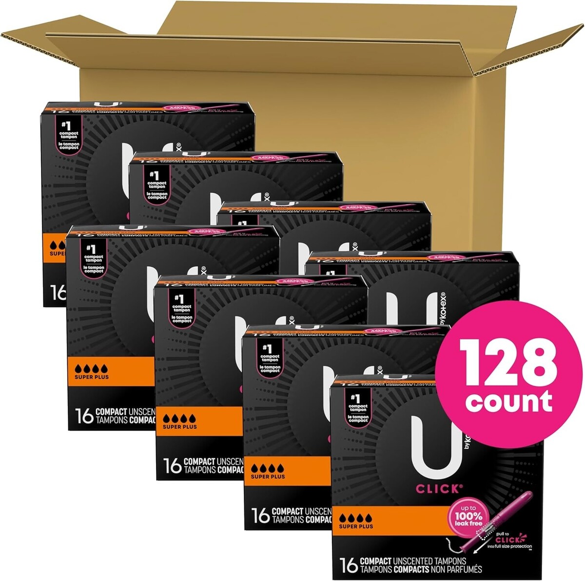 Click Compact Tampons, Super Plus Absorbency, Unscented, 128 Count 8 Packs of 16 Packaging May Vary