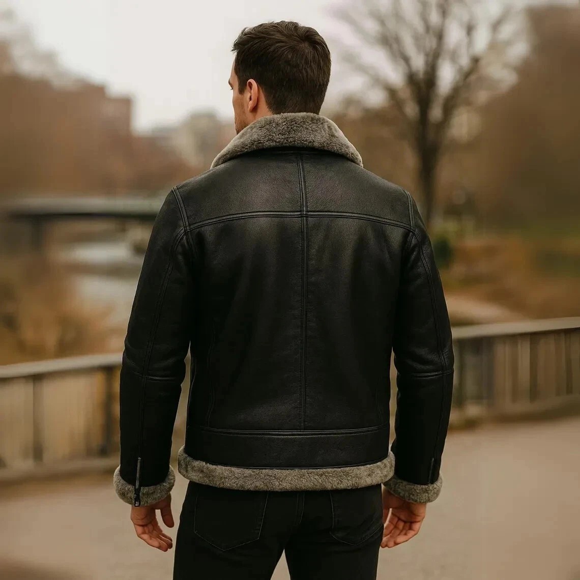 Mens Genuine Black Leather Shearling Aviator and similar items