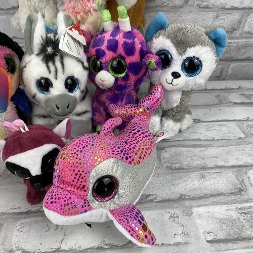 Lot of 9 8 Original Ty Beanie Boos 6" Size Glitter Eyes 1 Beanie Boo Clip