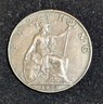Reverse depicts Britannia holding trident and shield, seated right, value above, date below