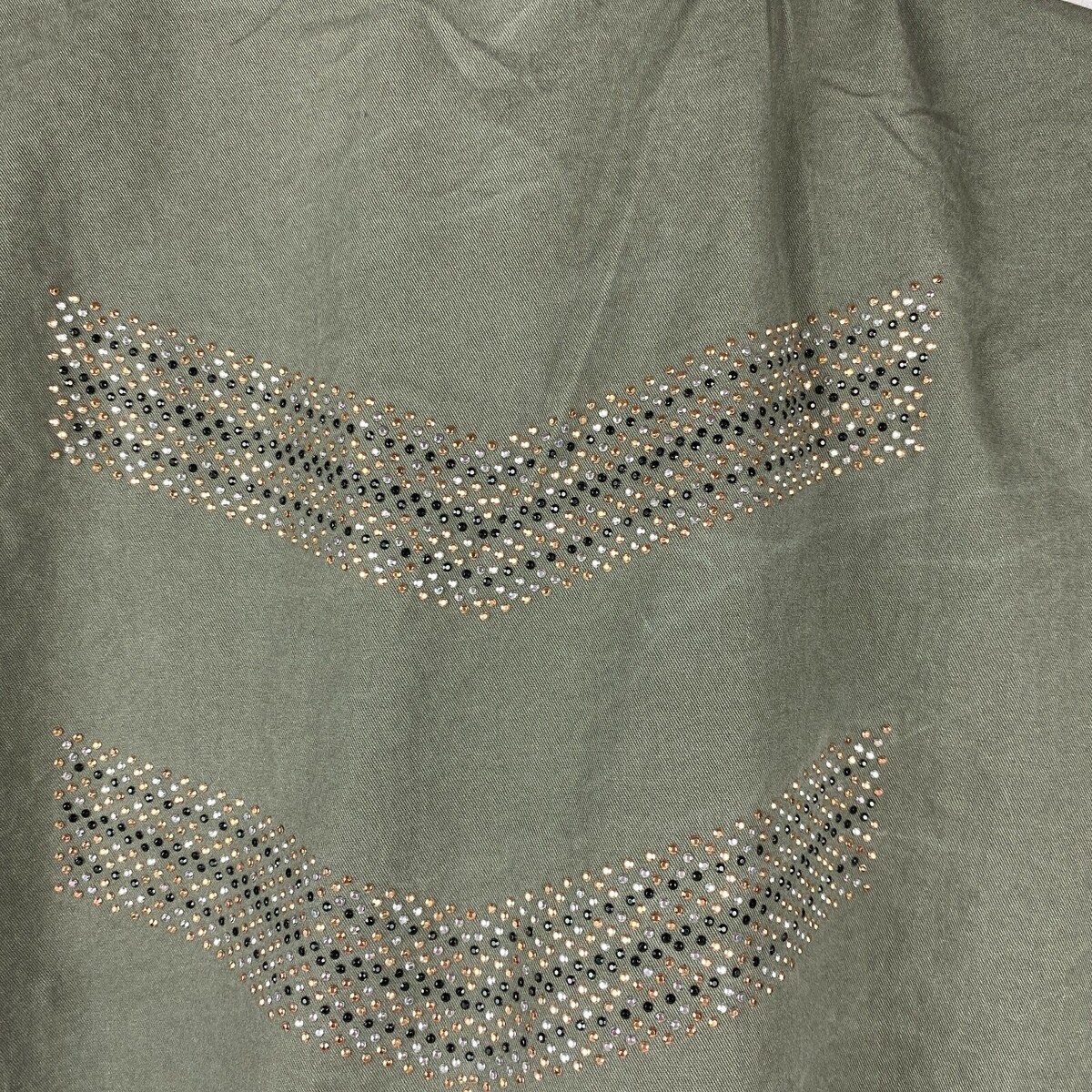 Jade & Ivory Military Style Jacket S Coat Full Zip Snap Roll Tab Sleeves Studded