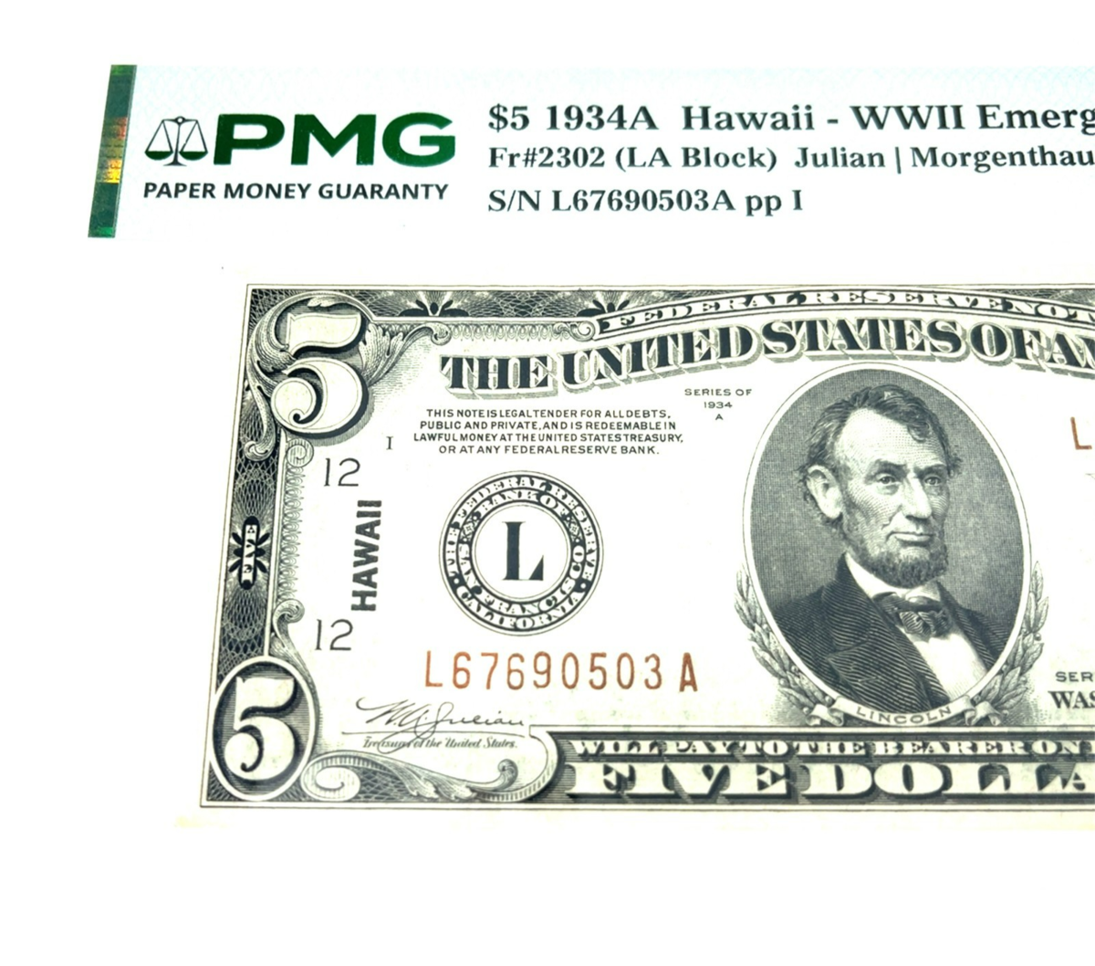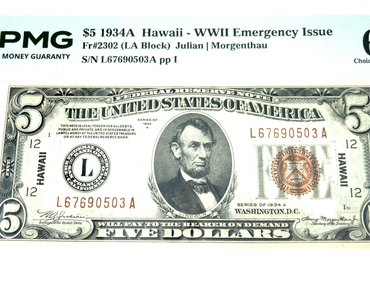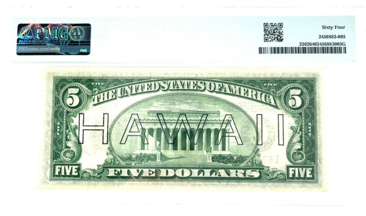 Series of 1934A Hawaii Emergency $5 Note FR #2302 PMG Choice 64