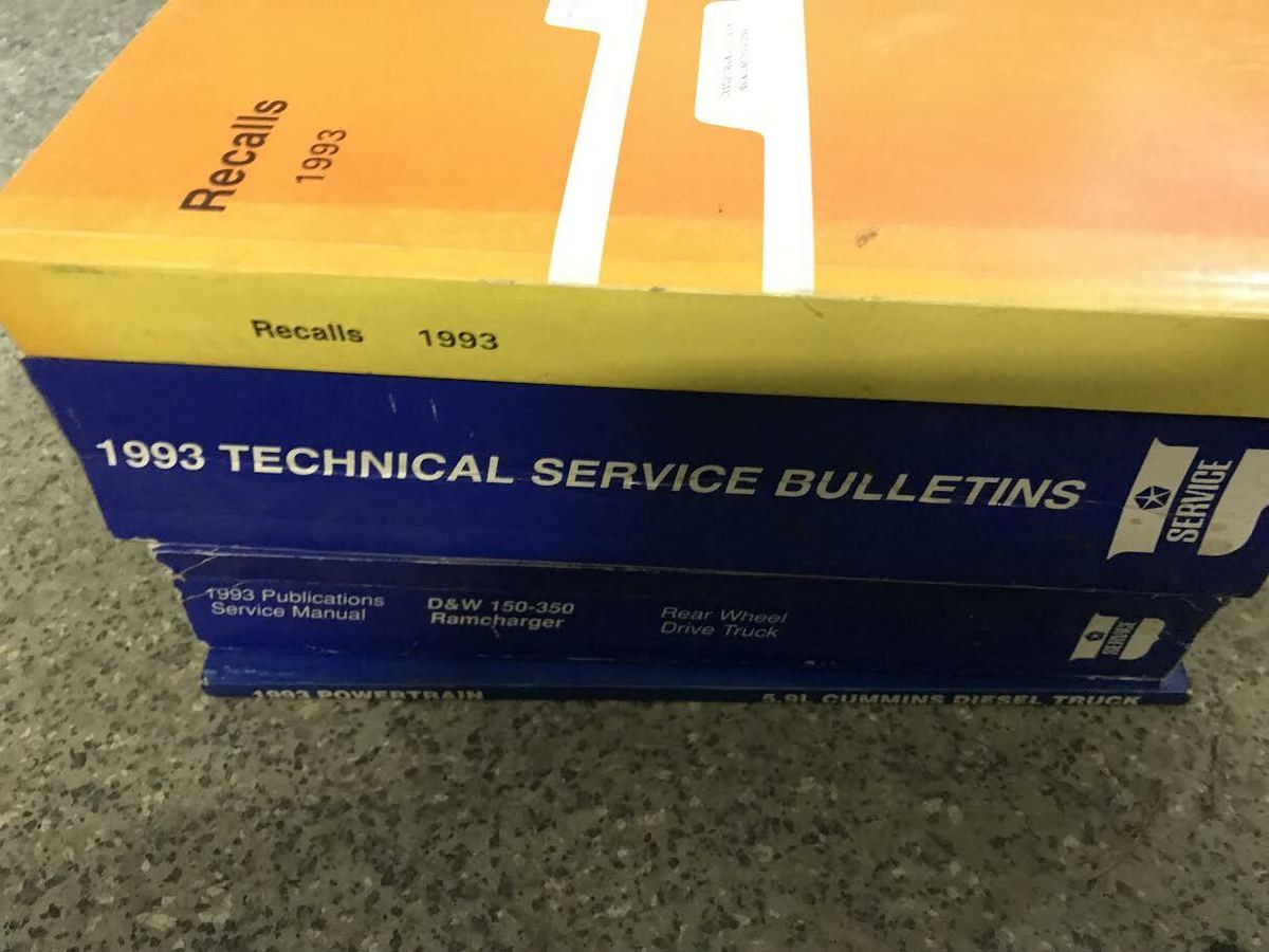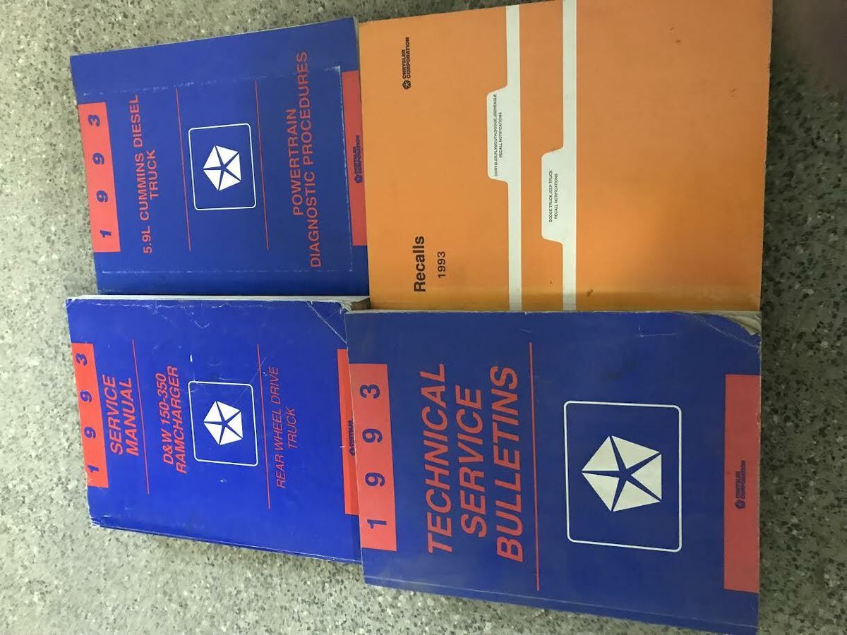 Factory 1993 Dodge Ramcharger Punte di trazione a trazione posteriore e DW 150/250/350 Manuale di servizio, 5.9 Manuale di diesel Cummins, manuale del manuale e del servizio tecnico.