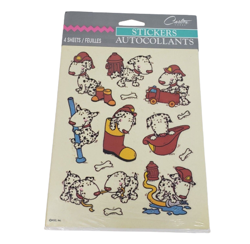 VINTAGE CARLTON CARDS DALMATIANS DOGS COLORFUL STICKERS 4 SHEETS TOTAL SEALED