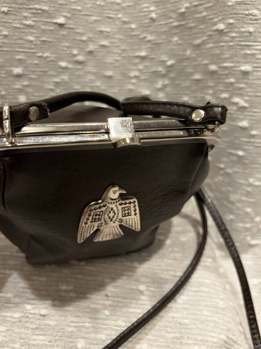 Barganza Vtg 70s Genuine Leather Crossbody Small bag Boho Hippie Thunderbird