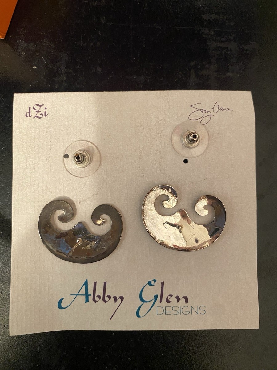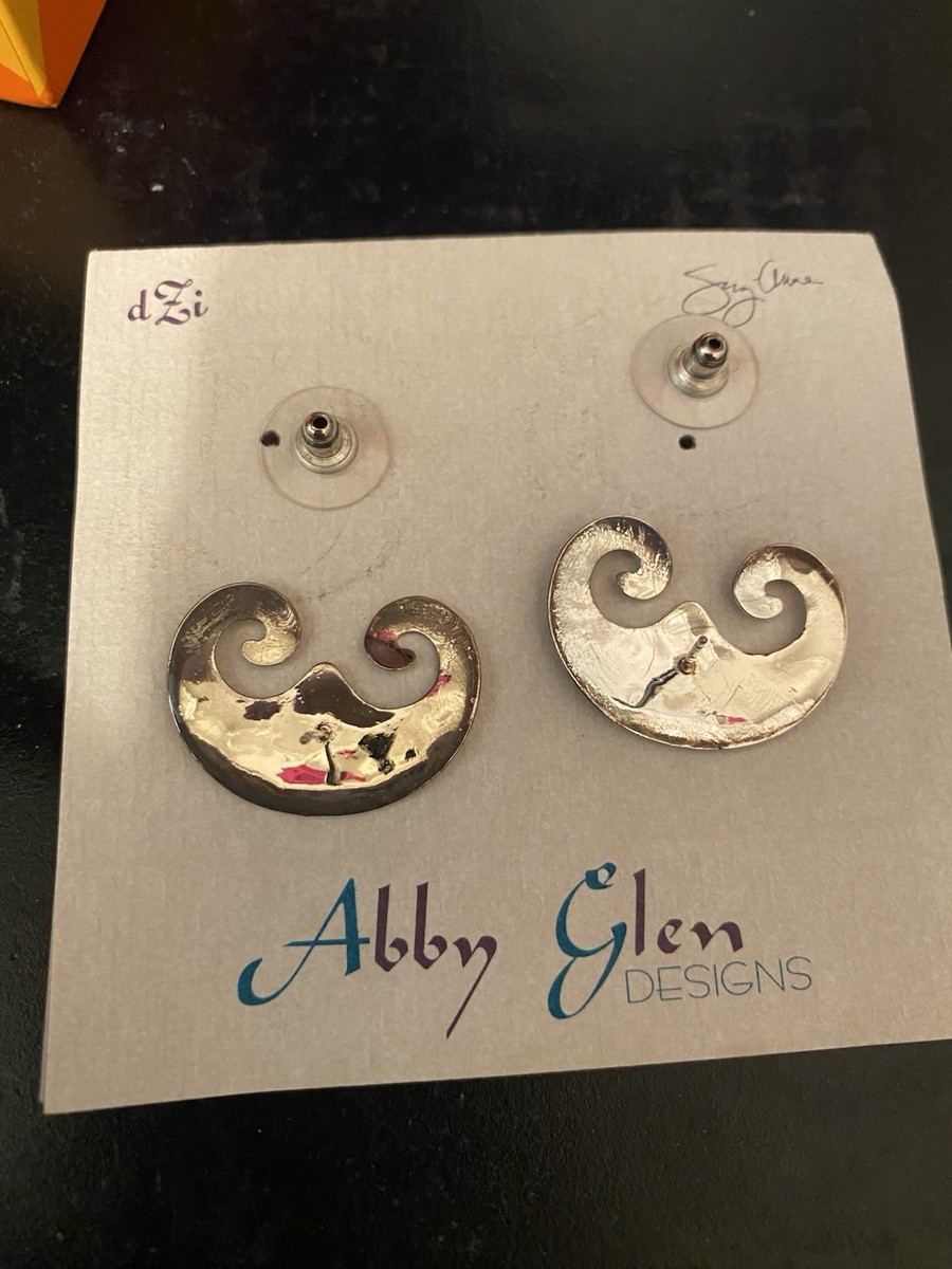 Abby Glen Designs Artisan Scroll Stud Earrings – Unmarked Silver Tone – Handmade