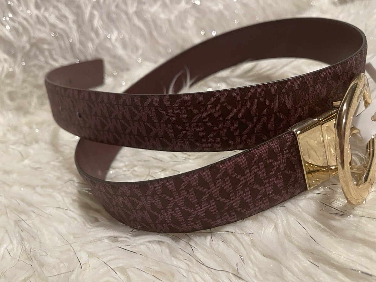 MICHAEL KORS MK Logo Twist Reversible Genuine LEATHER Belt Maroon SIZE S NEW