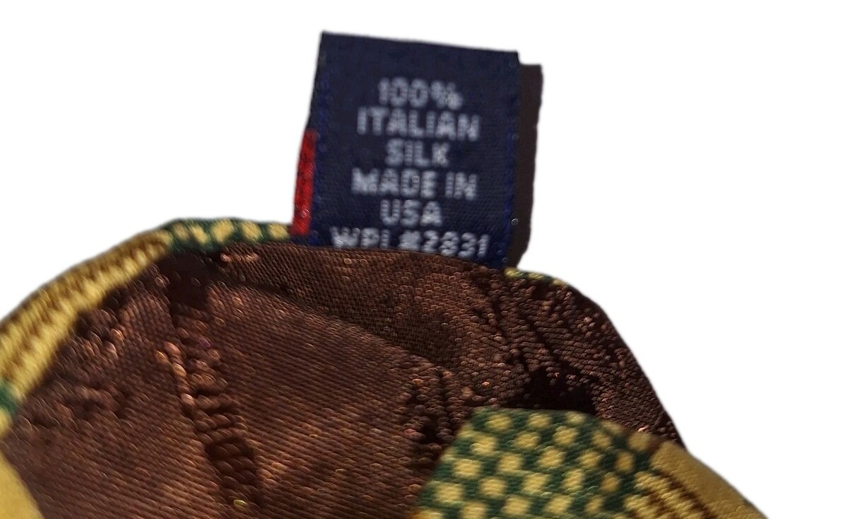 Vintage Tommy Hilfiger men?s novelty necktie featuring a classic golf motif with plaid accents. Crafted from 100% Italian silk and made in the USA.