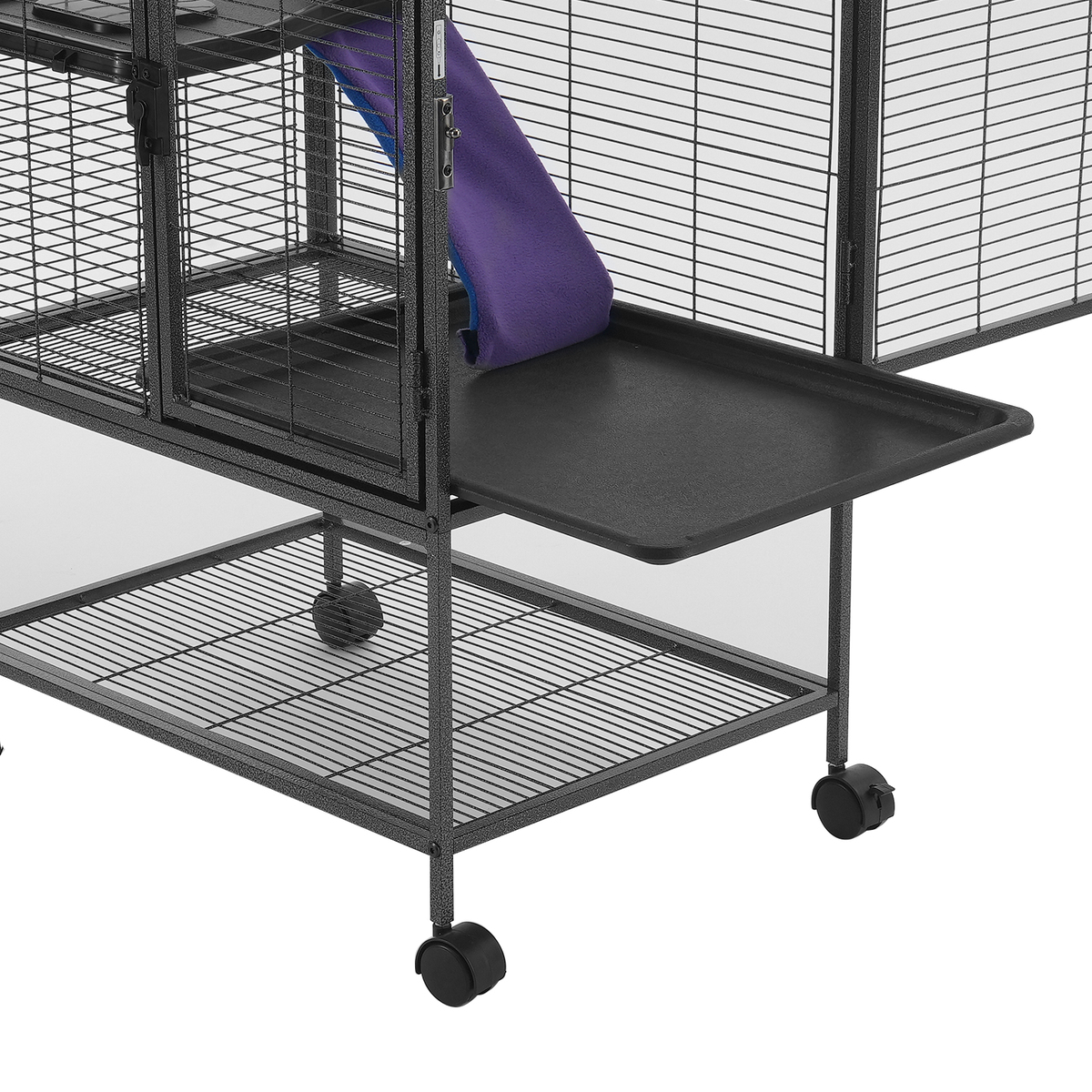 Easy to Move and Store: Our metal rolling pet cage comes with lockable rolling wheels, allowing easily move your pets from indoors to outdoors, letting them enjoy sunlight and nature. Additionally, there's a large storage shelf above the wheels for keeping pet supplies organized and saving space.