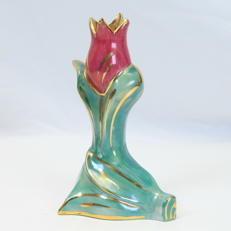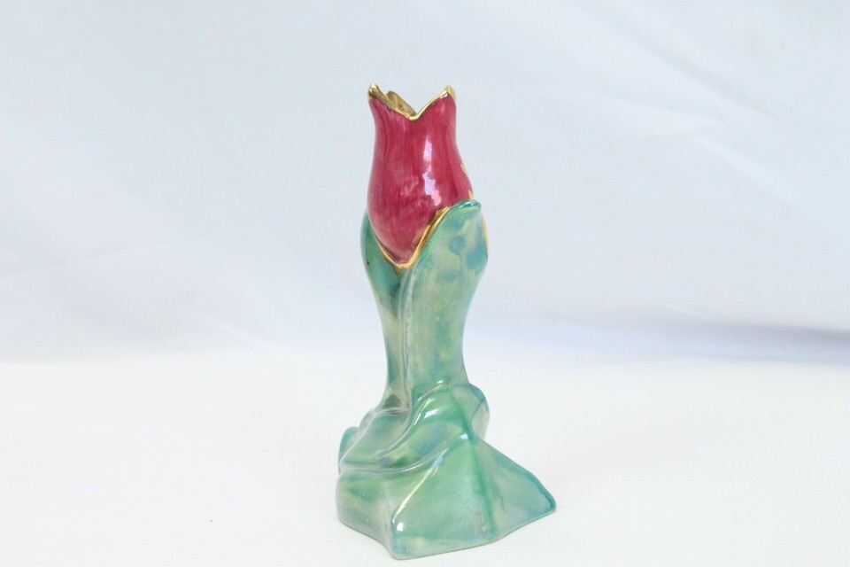 Wisconsin Centennial Porcelain Flower 1848 1948 Red Tulip 6" Tall Candle Holder