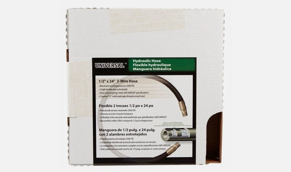Assemblies meet SAE 100R2AT standards. They are coiled and sleeved for easy storage and are labeled with size and specification for easy identification.