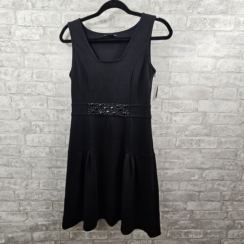Kensie Shift Dress Size Small Black Floral Embroidered Sleeveless V Neck Zip Up