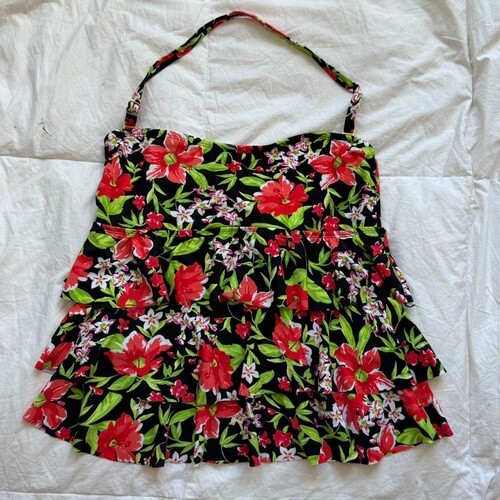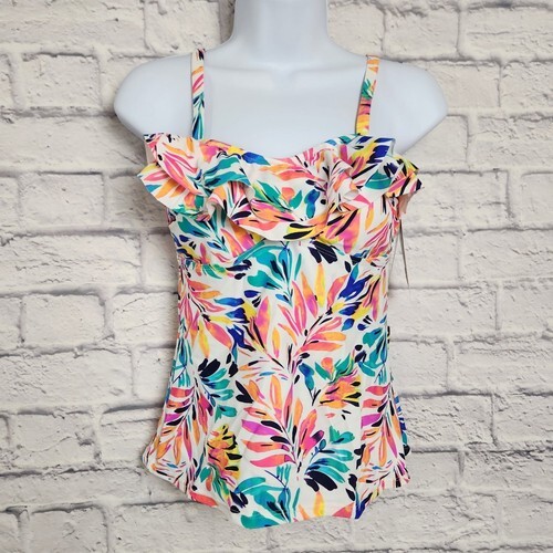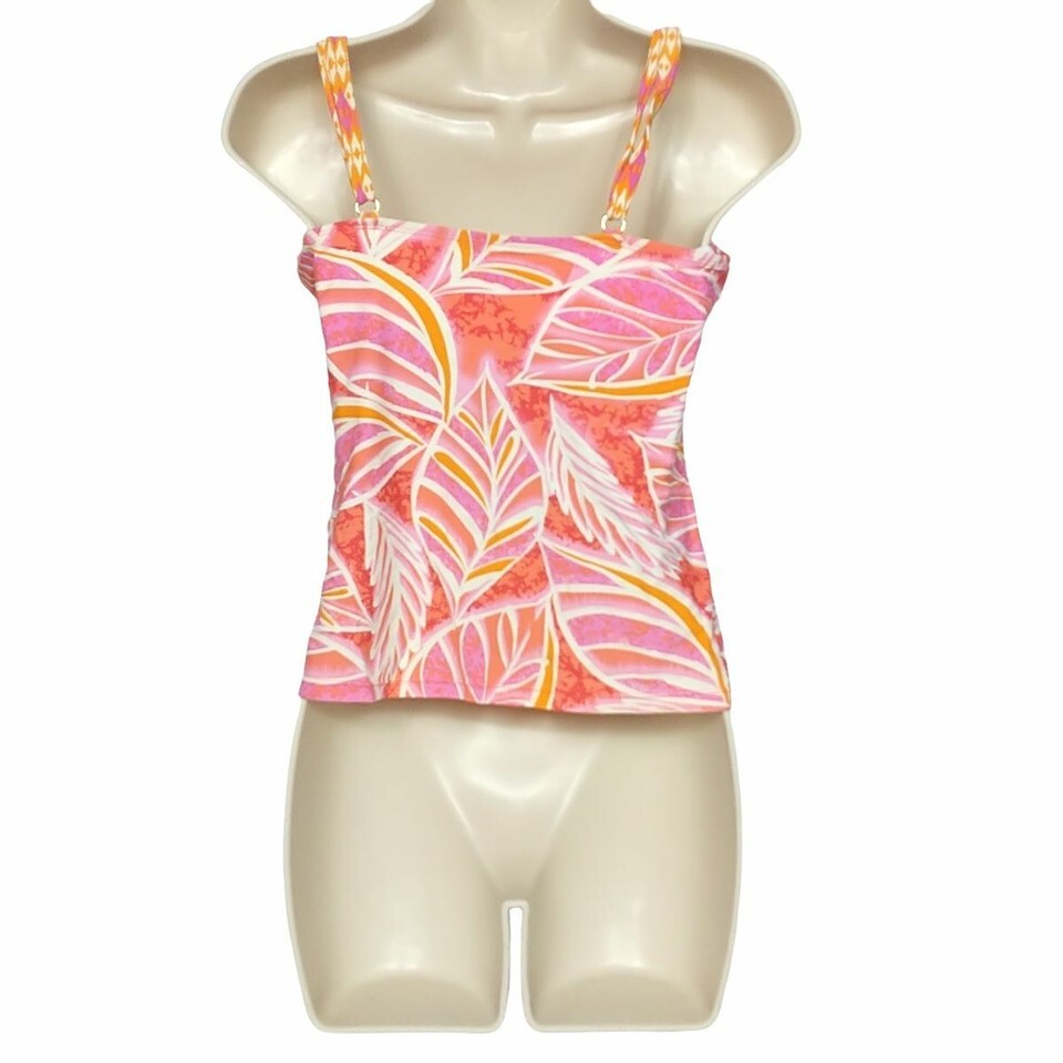 Island Escape Tankini Top 6 Orange Pink White Floral Padded Adjustable Straps