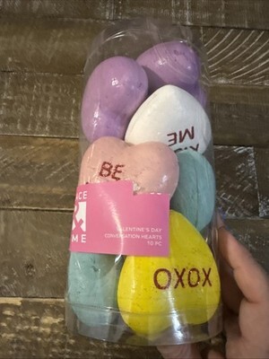 The Place And Time Valentine's Day Conversation Hearts Decor by Hobby Lobby is a charming table decor perfect for celebrating the holiday of love. These conversation hearts add a romantic touch to any table setting, making it ideal for Valentine's Day gatherings or intimate dinners for two. Made with attention to detail, this decor item is sure to impress guests and create a cozy atmosphere for a special day.
