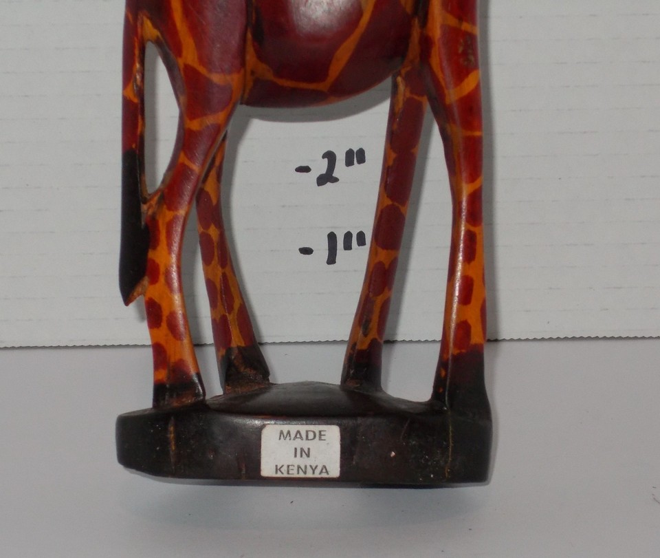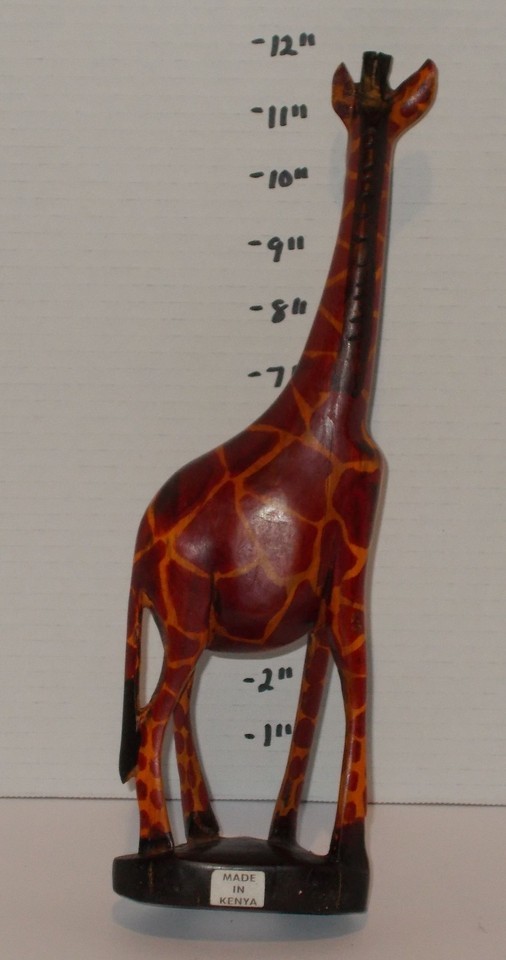 For Sale is a rare and hard to find Vintage Hand Carved Wooden Giraffe Figure Africian 12" Statue Made In Kenya. its In good USED Condition as pictured. no rips tears just some minor handling wear. Please ask Any and All Questions prior to purchasing. Fast Same or Next day shipping with Free Delivery Confirmation within the U.S. Payment Due within 7 days of purchase (if you need more time please let us know In advance) we love to combine shipping is always a Yes and Most of the time Additional Items Ship for free.
