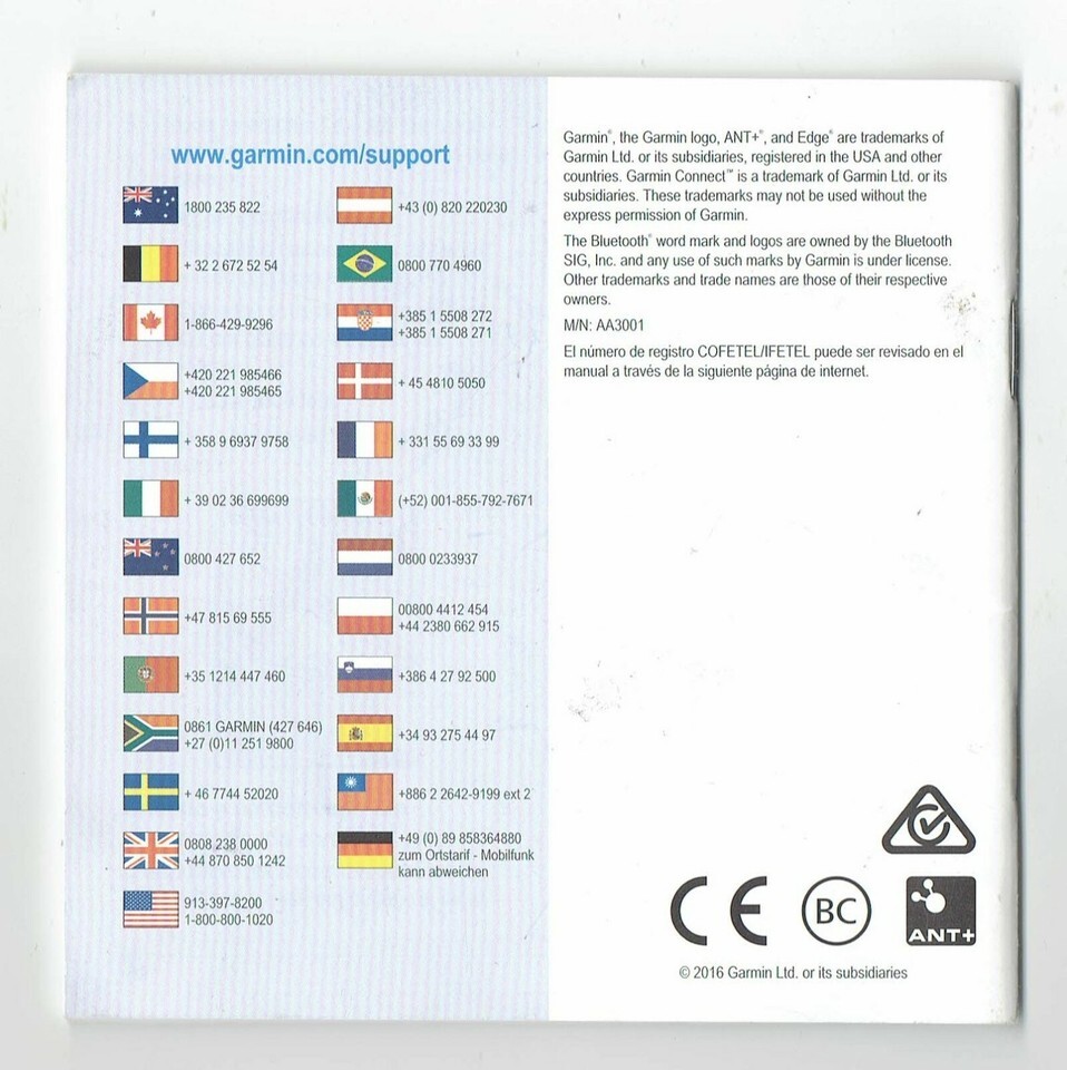 Garmin Edge Explore 820 Replacement Instruction Manual ONLY