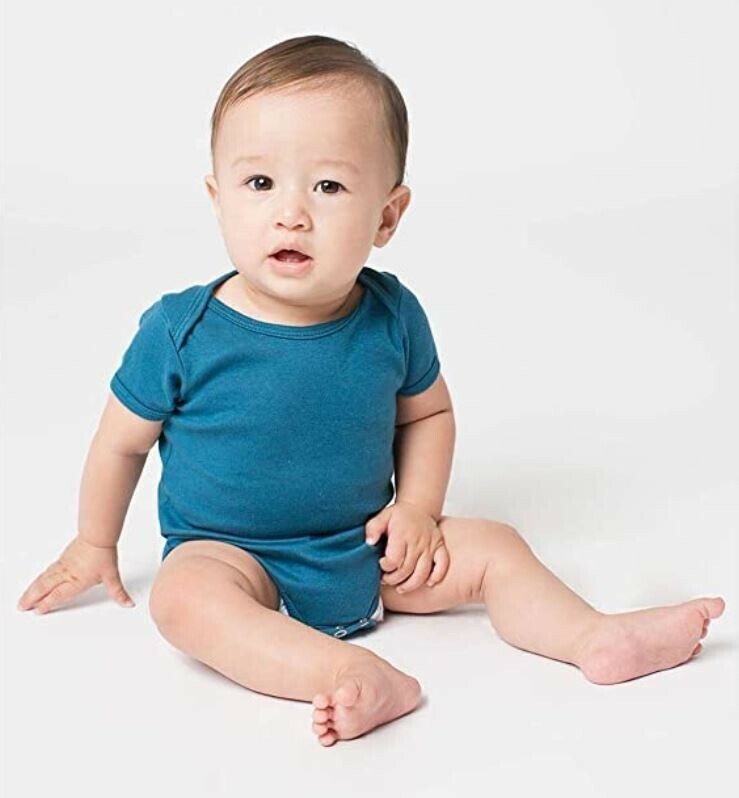This classic blue onesie is short sleeved and made from super soft Organic Baby Rib Cotton, designed by American Apparel for maximum comfort and fit for baby.