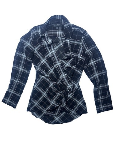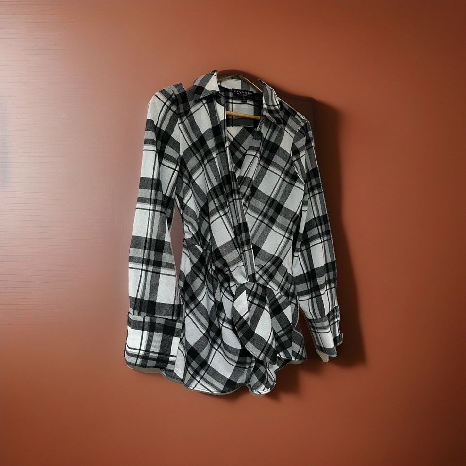 Laundry By Shelli Segal Plaid Crossover Twist Long sleeve Blouse Size Medium