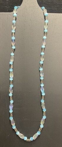 Two Strand Silver-Tone Light Teal Beaded Necklace Claw Clasp