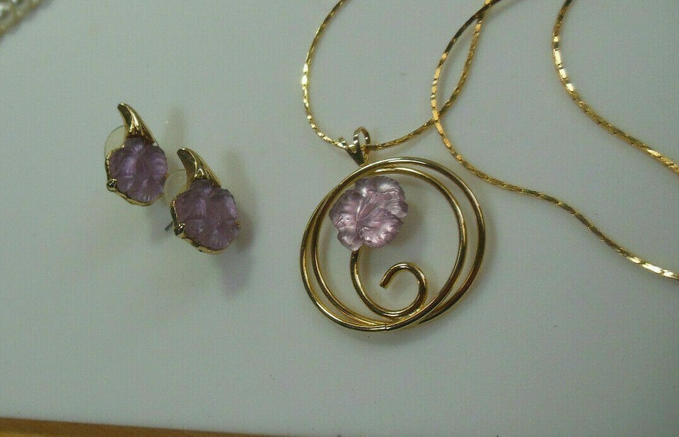 Gold-tone Purple Floral Lucite Pendant and 50 similar items