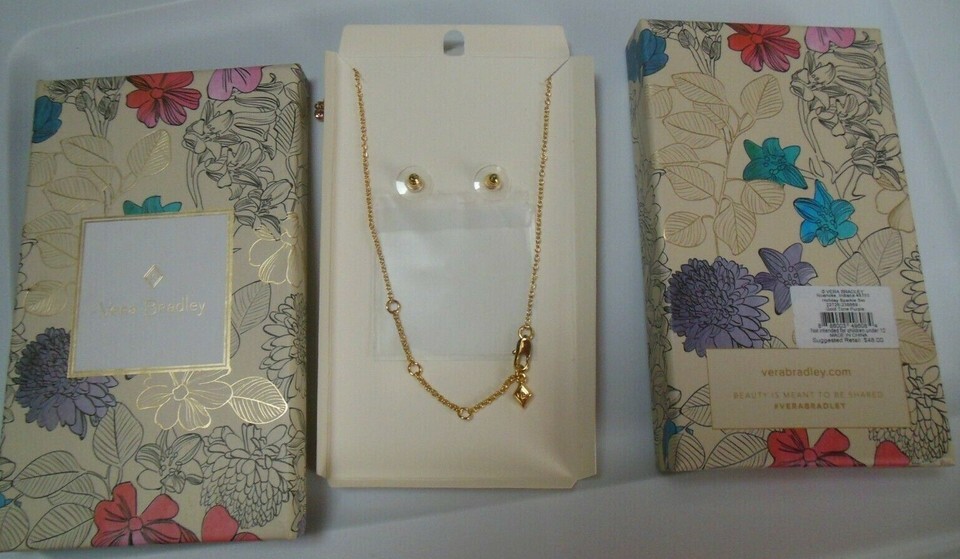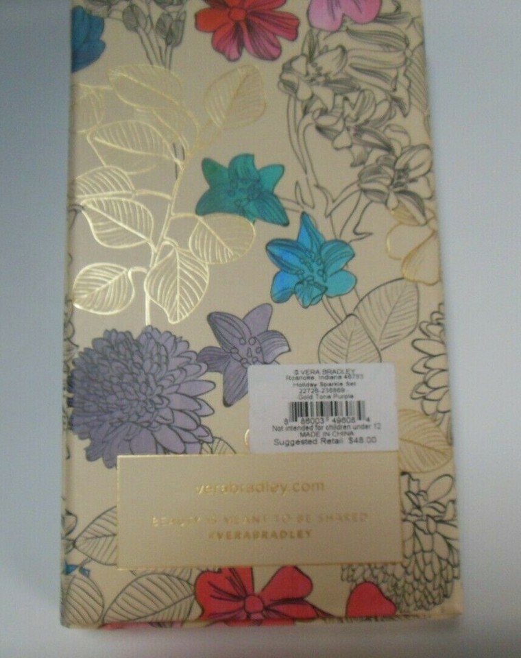 Vera Bradley Gold-tone Purple Necklace Earring Set Celebrate The Little Things