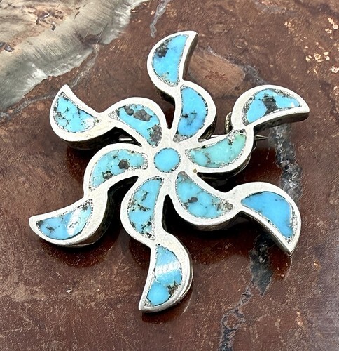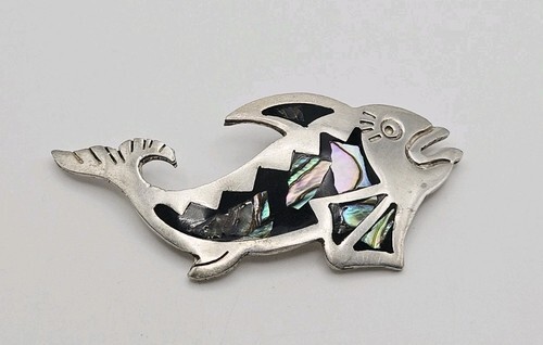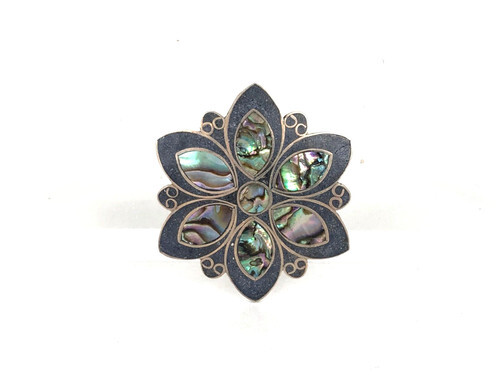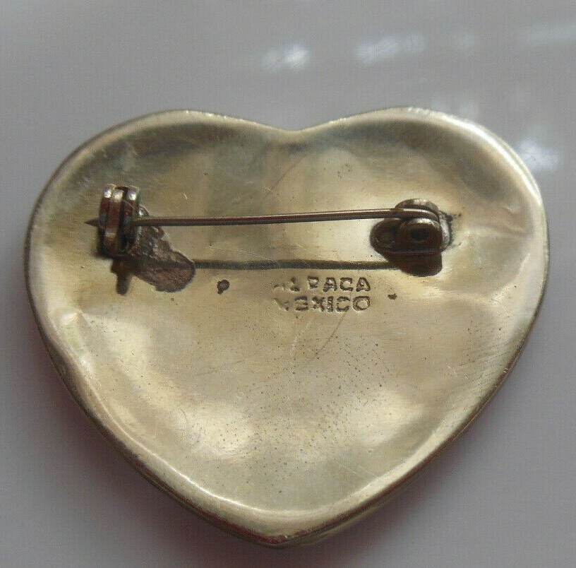 Alpaca Mexico Silver Pink/Blue Enamel Abalone Shell Inlay Heart Brooch
