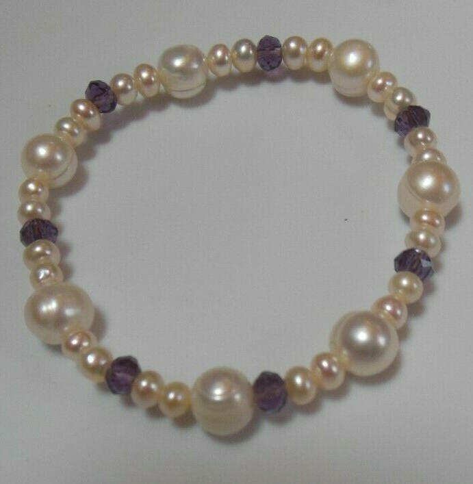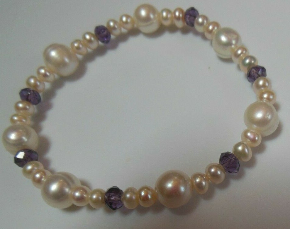 Amethyst Glass and Pearl Stretch Bracelet and similar items