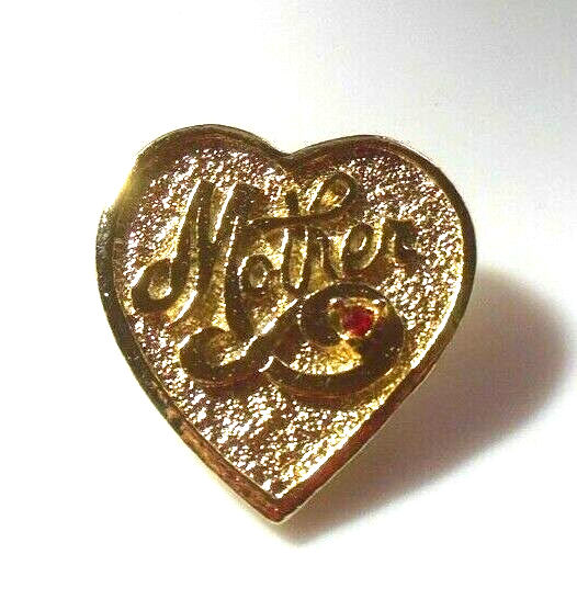 Vintage Signed Gerry's Gold-tone Heart Mother Brooch W/Red Rhinestone