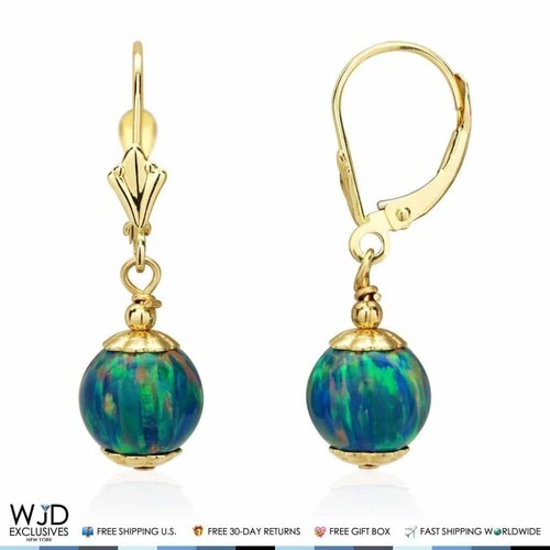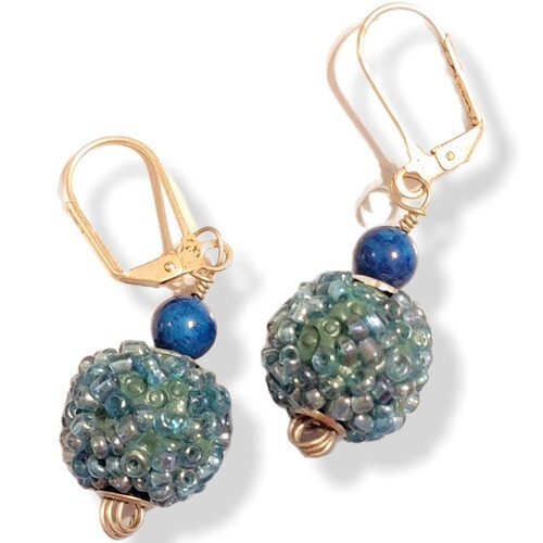 Vintage Blue Teal Glass Ball Dangle Hook Earrings