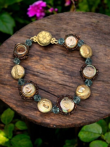 Vintage Lapis Glass Bead Face Stretch Bracelet