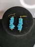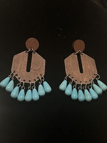Turquoise/Wood Bead Dangle Hook Earrings 2.25" Long