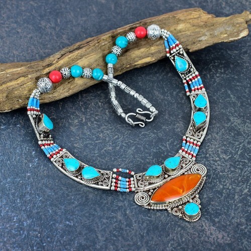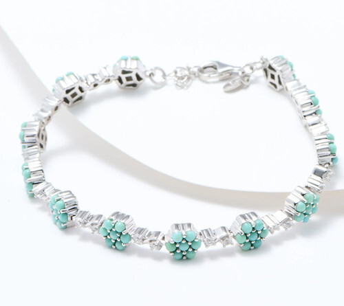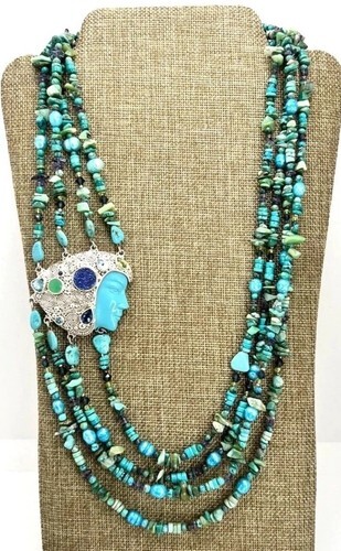 SAJEN Carved MOP Turquoise Bracelet Multi-strand Stretch 2-Sided
