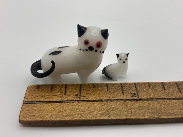 Pair adorable vintage handmade glass cat and kitten miniature figurines