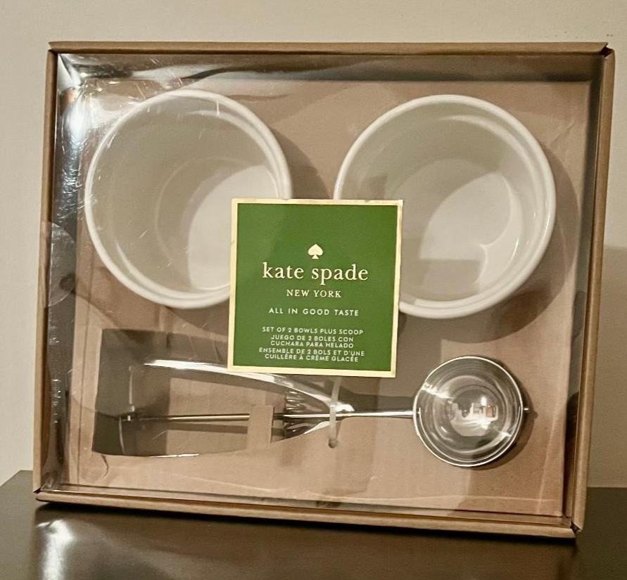 Kate Spade All in Good Taste Ice Cream Gift Set of 2 Bowls Plus Scoop Lenox New