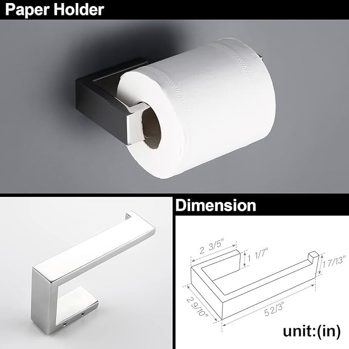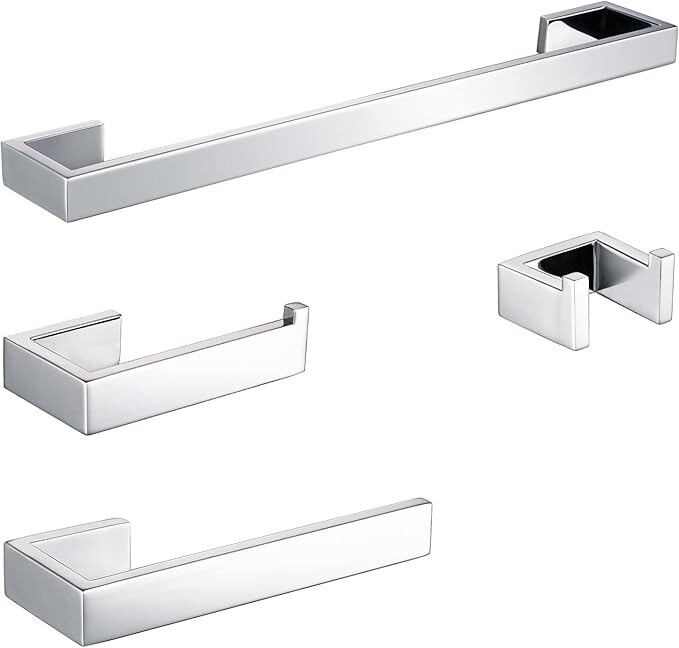 Bathroom Accessory Kit Includes: 1x 23.6?? wall mounted towel bar, 1x 5.7'' toilet paper holder, 1x 8.26" towel ring and 1x 2.55'' double robe hook