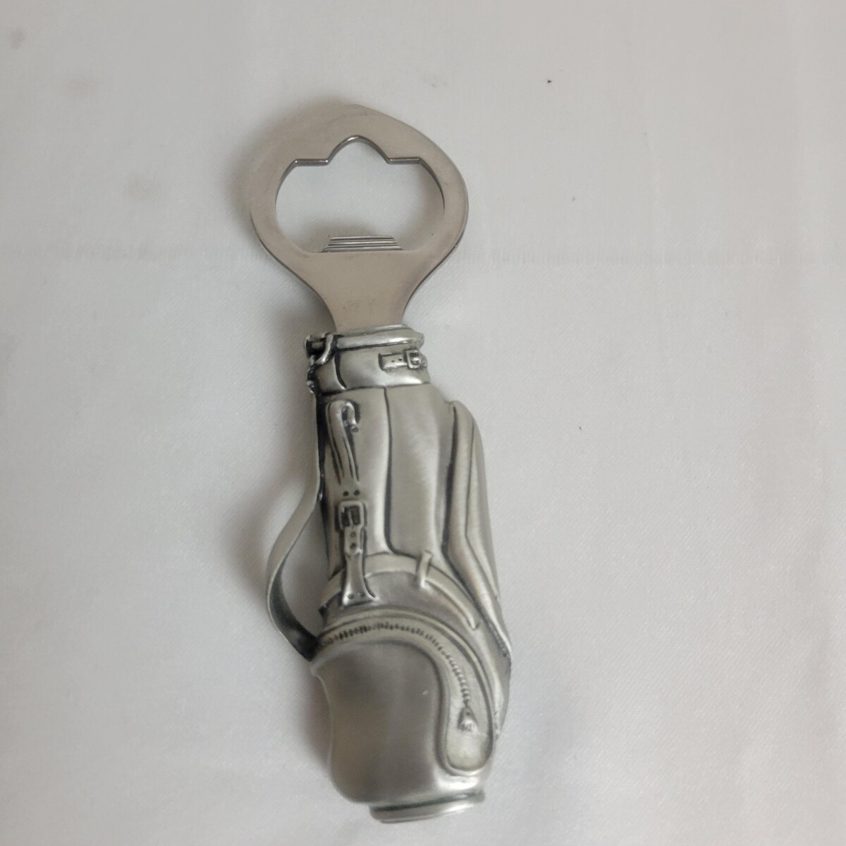 Golf Bag Pewter and Stainless Steel Bottle Opener by Seagull Pewter Canada VTG