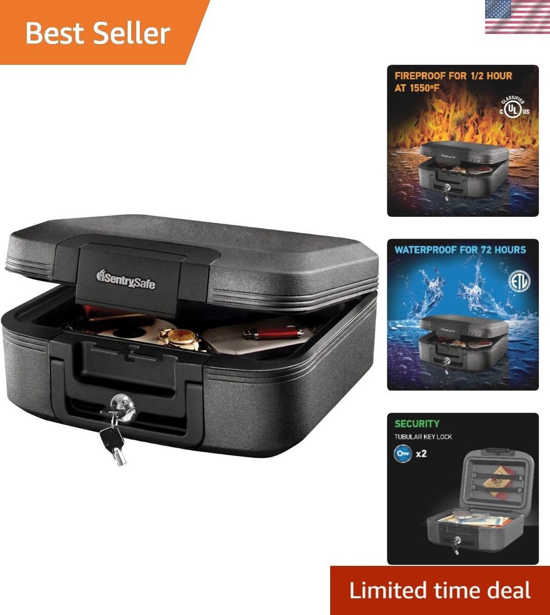 FIREPROOF: Classified to endure 1/2 hour at 1550F, designed to protect irreplaceable documents, small valuables, DVDs, and USBs from fire damage.
