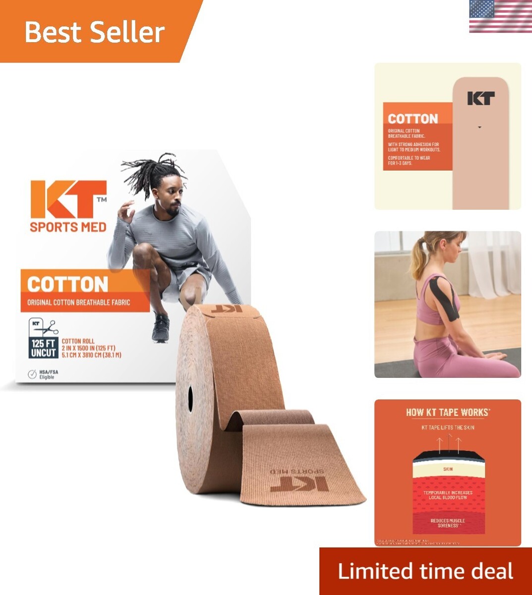 Durable and long-lasting: Crafted from classic cotton with an elastic core, this tape adheres securely for 1-3 days, even through showers or hot weather. Lightweight and breathable, it withstands the demands of your most challenging activities.