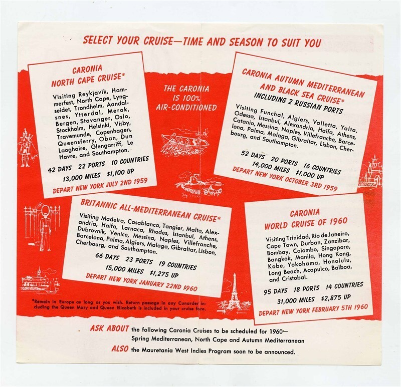 Cunard Lines CARONIA Cruises 1959 - 1960 and similar items