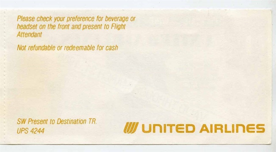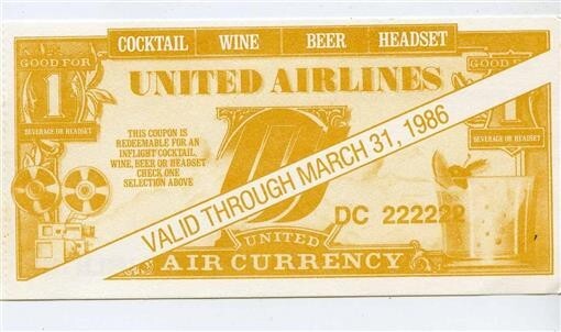 United Airlines Free Drink Coupon Air Currency Expired Cocktail Beer Headset